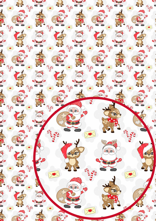 Festive Ruldolf & Santa printed 280gsm canvas fabric A4