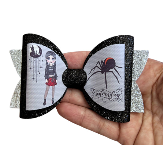 Wednesday kooky creepy themed pre printed canvas bow loops x 7 (3.5”)