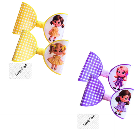 7 x Cute Gingham Cartoon school girls canvas bow loops 3.5” colour choice