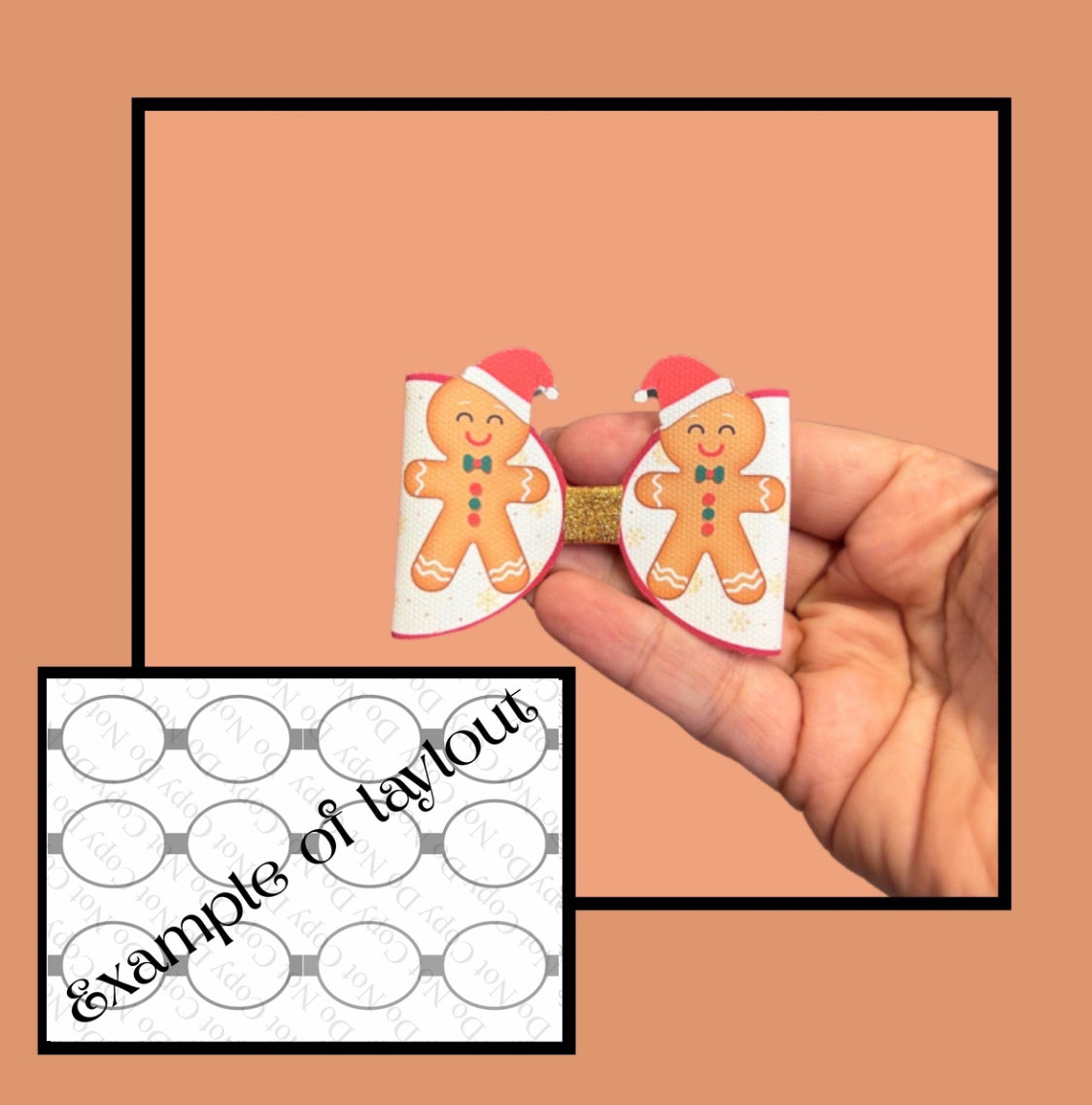 3D Gingerbread man christmas themed printed canvas bow loops x 7