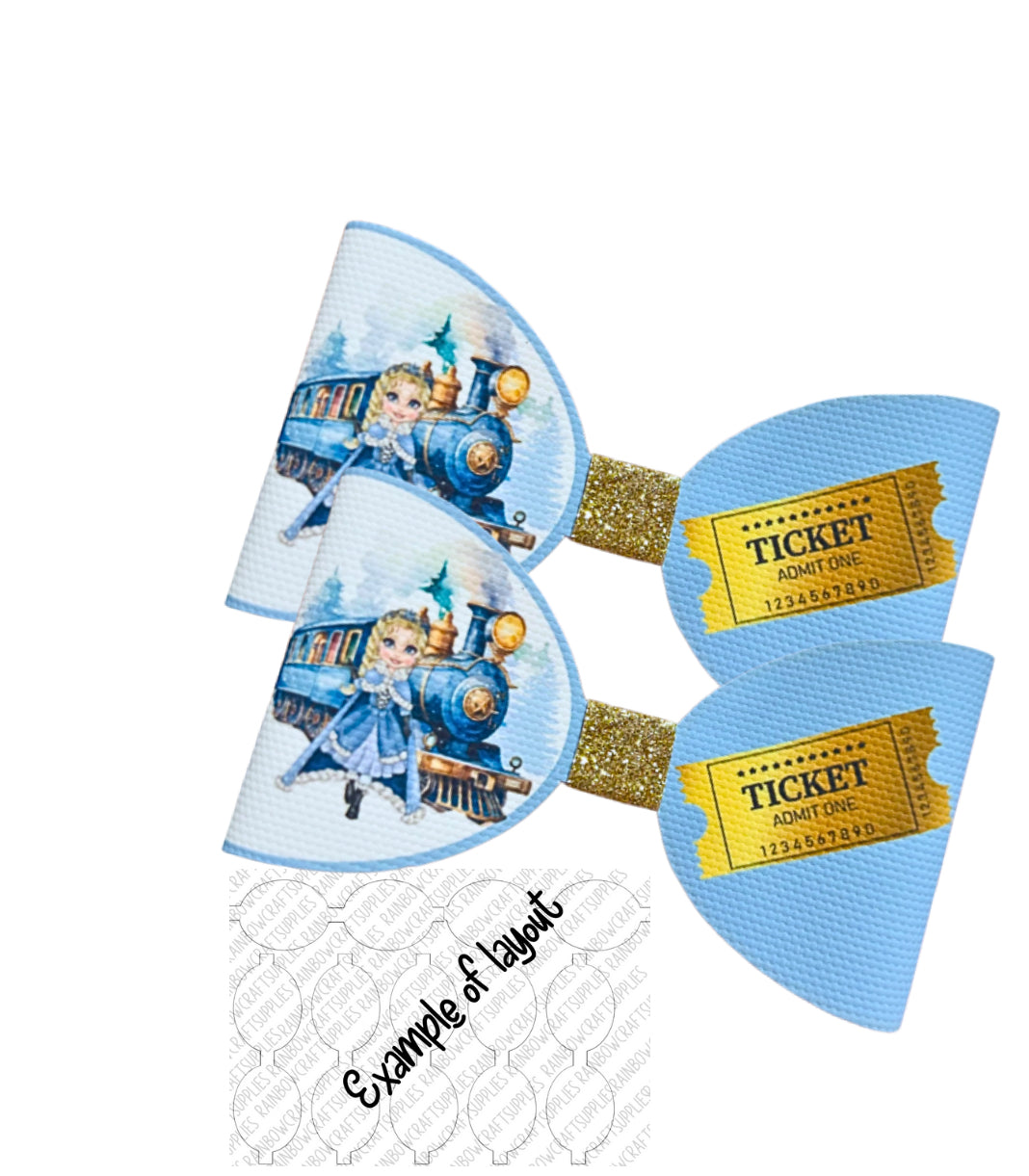 7 x Christmas Train leatherette hair bow loops 3.5” (hair colour choices )