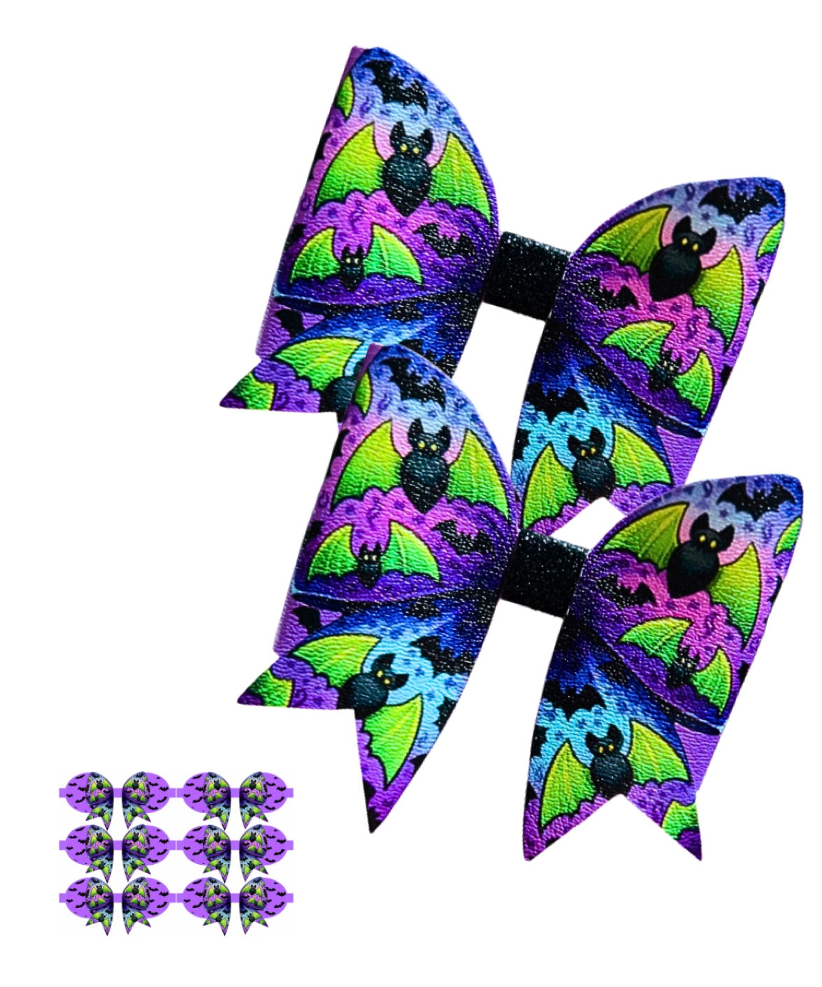 7 x printed in house Leatherette bow loops 3.5” 3d Neon bat bow with attached tails