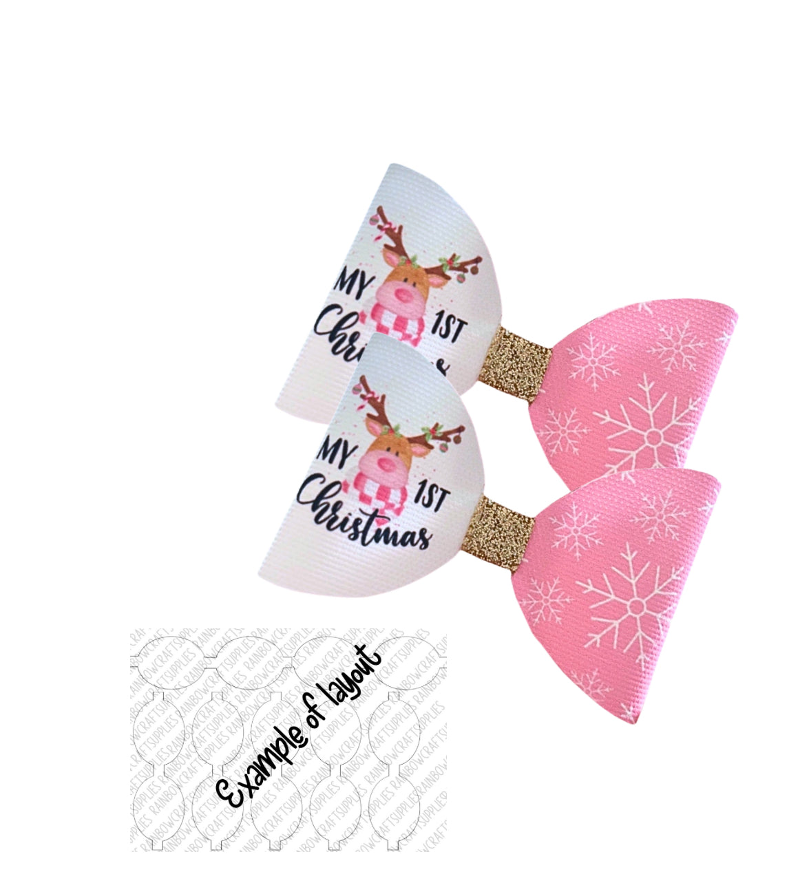 My 1st Christmas (reindeer) pre printed canvas hair bow loops x 7