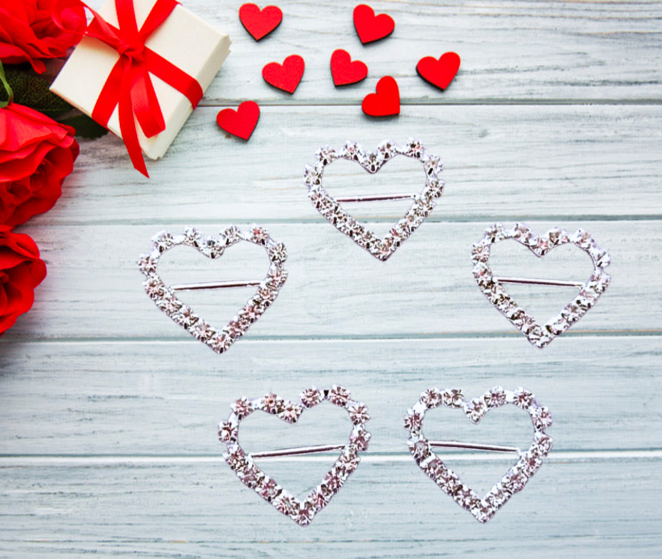Valentines Diamanté heart slider buckles x 5 valentines