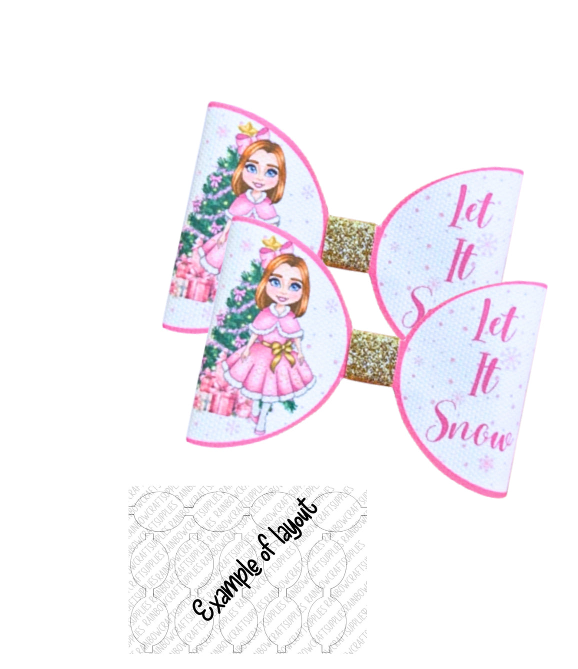 7 x Let it snow Christmas dolly leatherette hair bow loops 3.5”