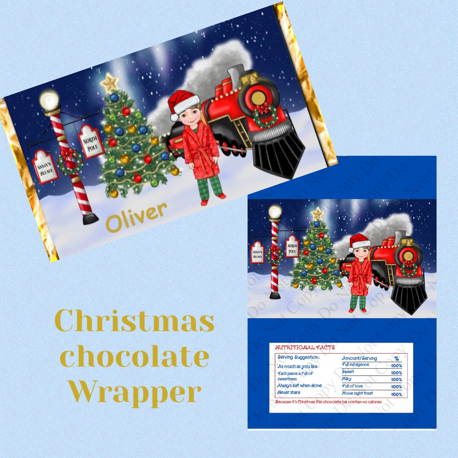Personalised Chocolate wrapper Christmas train Boys