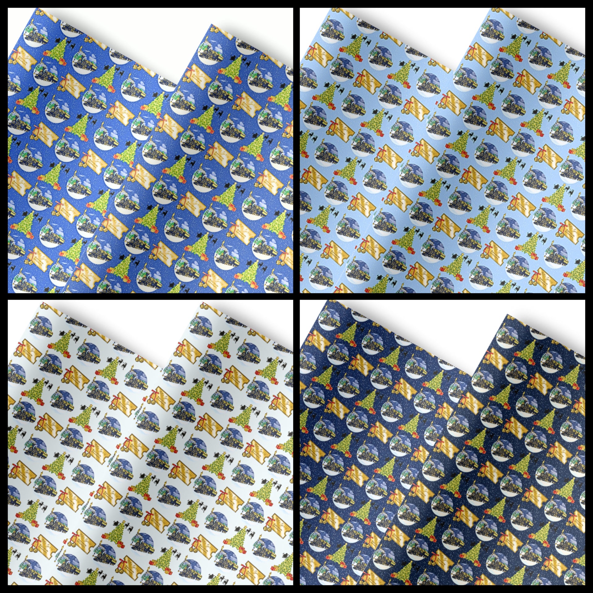 Stunning polar express train themed canvas printed fabric comes in a choice of 4 colours