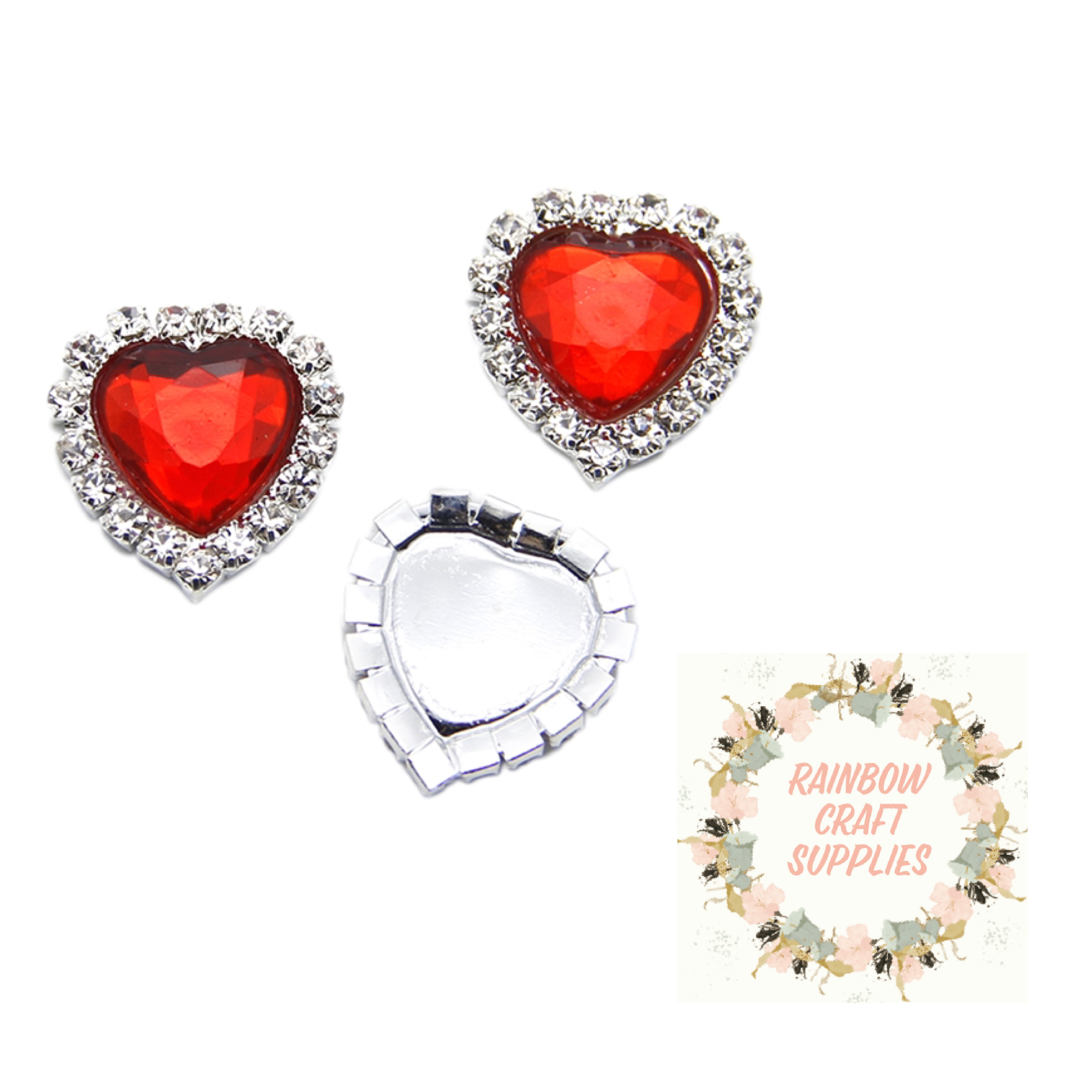 Rhinestone heart cameo flat back 20mm